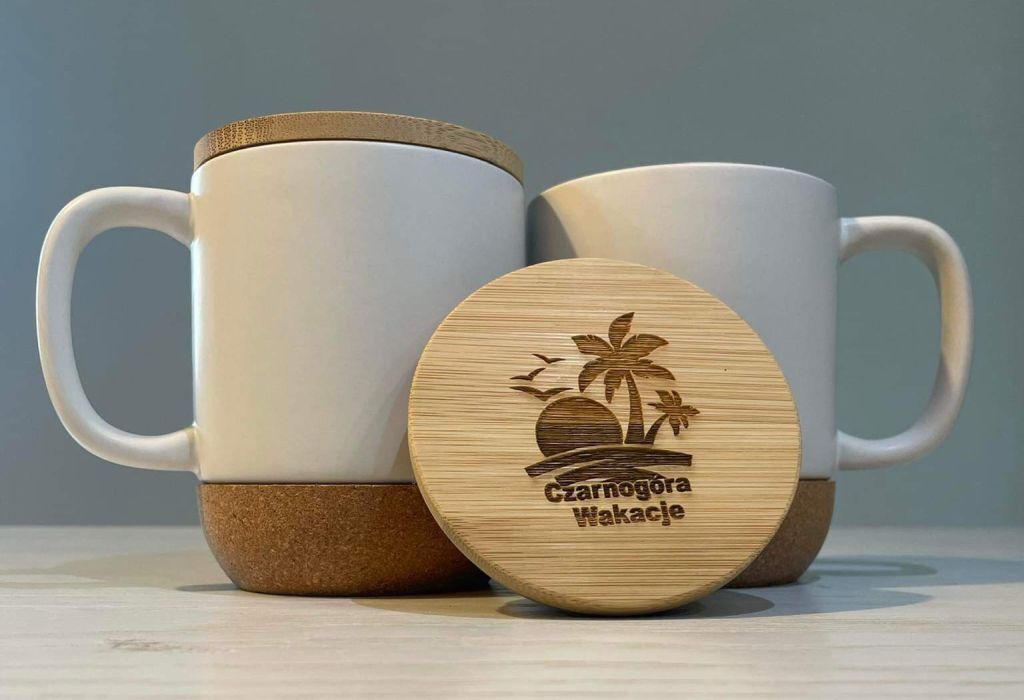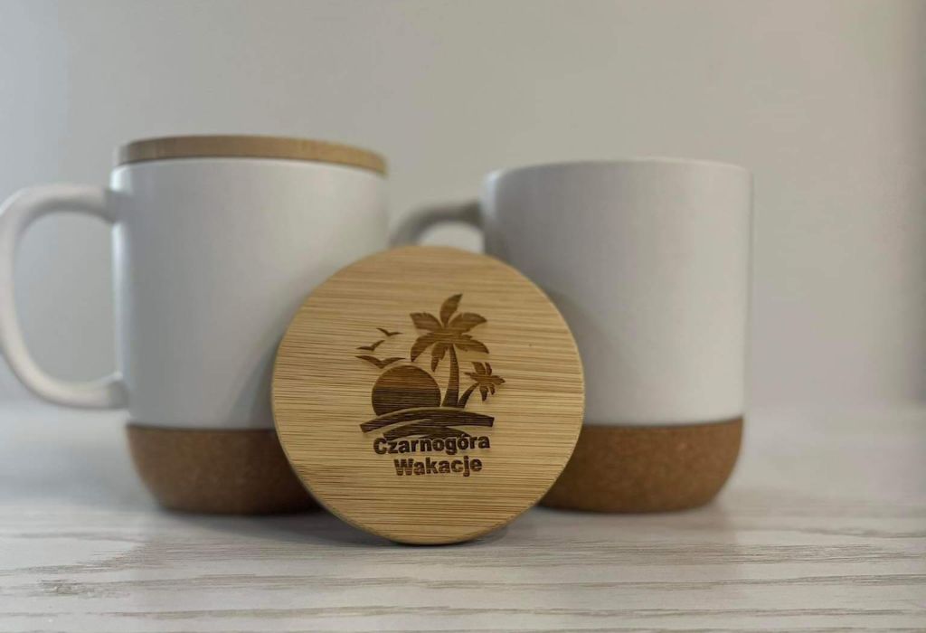Odkryj Elegancję w Każdym Napoju z Naszym Kubkiem Ceramicznym z Bambusową Przykrywką z naszym Logo!